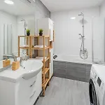 A balcony and a dining area are all fitted with a television, as well as ironing facilities, ensuring guests' comfort. Featuring a bathtub, a separate toilet, and a shower, a bathroom provides hair dryers and bath sheets.